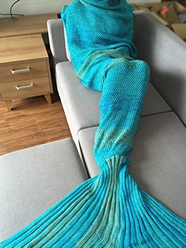 FEESHOW Handmade Knitted Mermaid Tail Blanket Living Room Bedroom Soft Cozy Sleeping Bag for Adult Kids Teens Children (Lake Blue (Adult))
