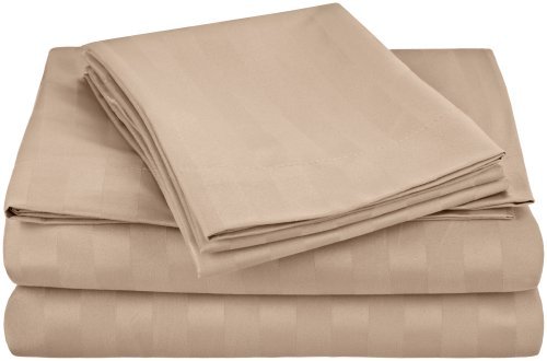 Cathay Home Luxury Dobby Stripes Sheet Set Full Dark Cream