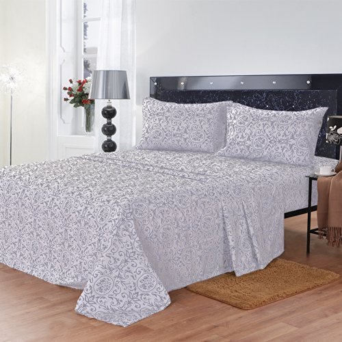 Maine Street Living Microfiber Baroque and Solid Sheet Set King Gray 2-Pack