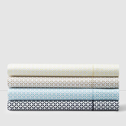 Hudson Park 500 Thread Count Printed Tiles Twin XL Fitted Sheet Blue [並行輸入品]