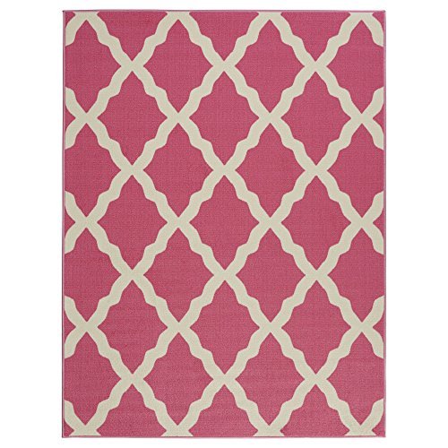 Ottomanson Glamour Collection Hot Contemporary Moroccan Trellis Design Kids Rug Kitchen and Bathroom Mat 3'3 x 5'0 Pink