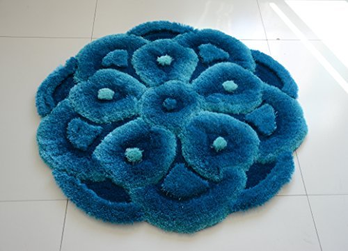 New 3D 4 Layer Look Flower Shape Soft and Smooth Shaggy Rug 100cmx100cm (716) (Turquoise) [並行輸入品]