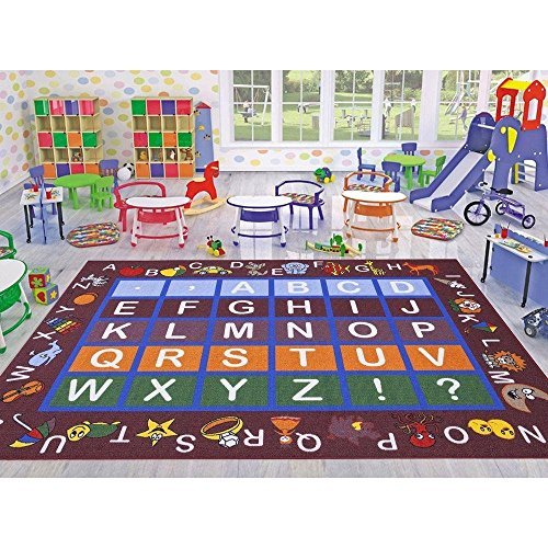 Ottomanson Jenny Collection Dark Red Frame with Multi Colors Kids Children's Educational Alphabet (Non-Slip) Area Rug 3'3 X 5'0 Red [並行輸入品]