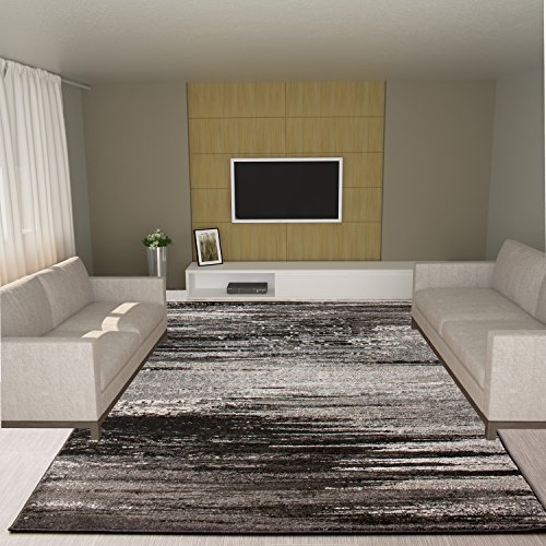 Dark Gray Rug Modern/Contemporary Design 3' 3 X 5' 3 (3x5) Soft Striped Carpet for Living Room / Bedroom [並行輸入品]