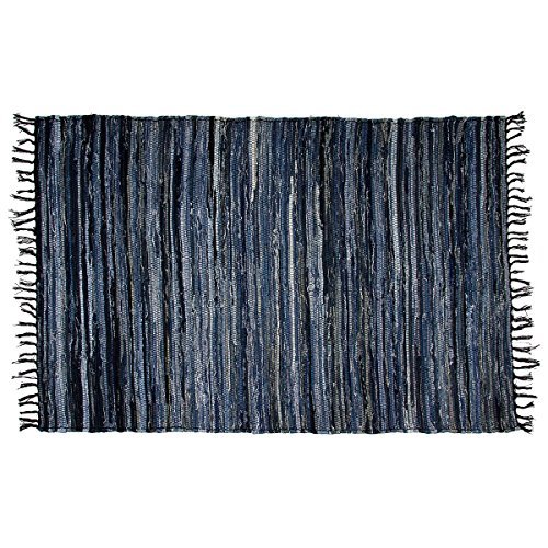Denim Chindi Area Rag Rug 100% Cotton Recycled For Living Room Entryway Bedroom Porch Woven Large 4x6 [並行輸入品]