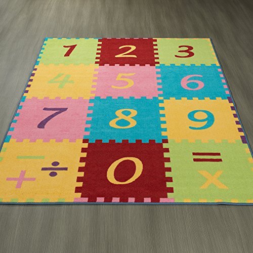 Ottomanson Children's Garden Collection Multicolor Numbers Math Design 5'0X6'6 Children Nursery Kid's Play Area Rug [並行輸入品]