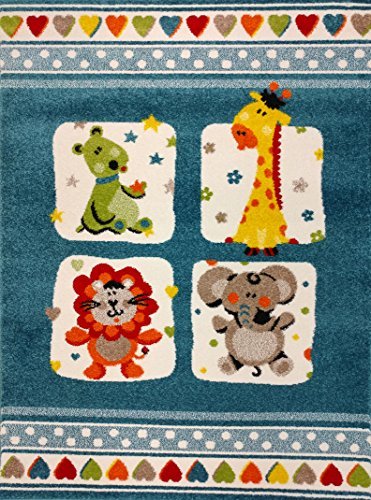 KC CUBS Boy and Girl Bedroom Modern Decor Area Rug and Carpet Collection For Kids and Children Blue Nursery Animal Friends (3' 11 x 5' 3)