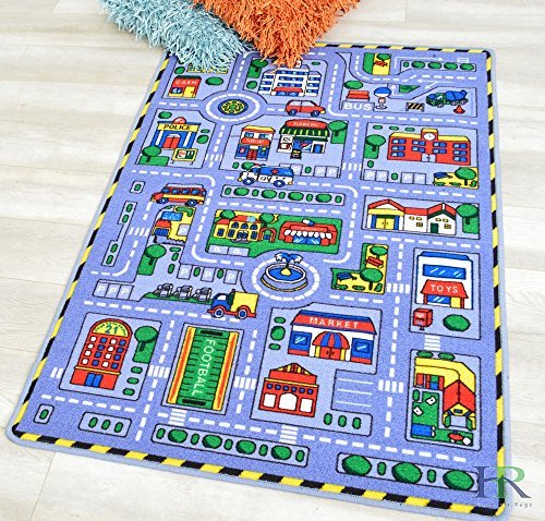 Handcraft Rugs-Grey Kids Rugs. Driving Skills/Play Time Race Track Road Rug. Rubber Back/ Non-Slip. Ideal for Classroom/ Kids Room.5 ft. by 7 ft.