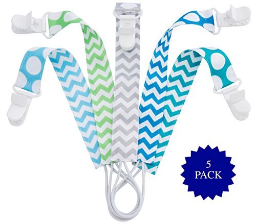 Pacifier Clip - 5 Pack | Unisex | Best Universal Silicone teething Pacifier Holder Set for Girl/boy Soothie/MAM Pacifiers Teething Ring Toys | Perfect Baby Shower Gift