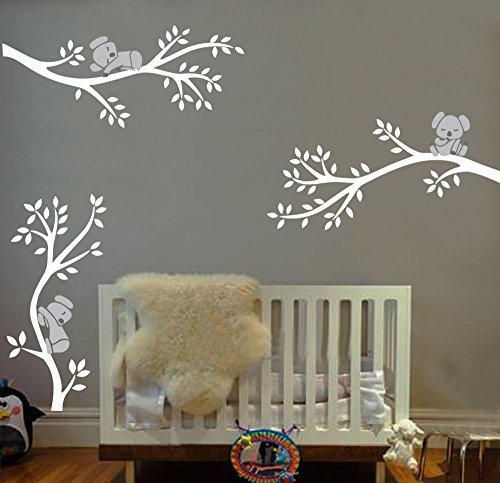 LUCKKYY Three Koalas tree Branches Wall Decal Wall Sticker Baby Nursery Decor Kids Room (White)
