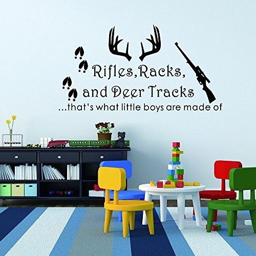 Wall Decal Decor Rifles Racks Deer Tracks That's What Little Boys Are Made Of - Baby Boy Nursery Decor - Hunting Theme Camo Deer Room Crib(Black 12h x22w)