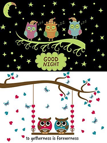 Two Wall StickersTechfeed Night Light Wall Decals and Branch Owl Wall Stickers for Kids Rooms Bedroom Decorative Removable Wall Decor Stickers for Girls Boys