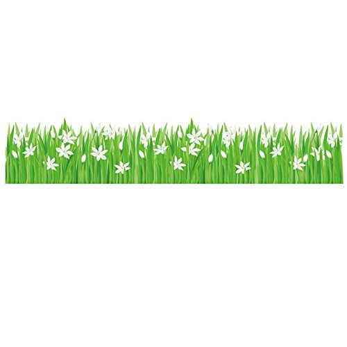 UNIQUEBELLA Wall Stickers Murals Wall Decor Green Garden Grasses and Flowers Wall Decals PVC Sticker Bathroom Kitchen Window Nursery Bedroom Baseboard Removable