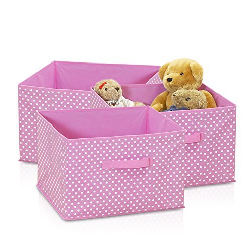 FURINNO 3-SD11144PK Laci Dot Non-Woven Fabric Soft Storage Organizer (3 Pack) Small Pink