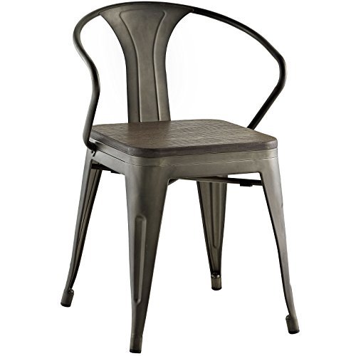 Modway Promenade Modern Aluminum Bistro Dining Chair With Bamboo Seat in Brown