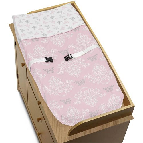 Pink Gray and White Shabby Chic Alexa Damask Butterfly Baby Changing Pad Cover [並行輸入品]