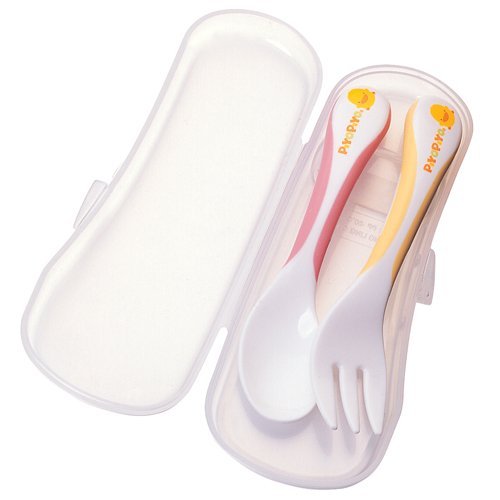 Piyo Piyo Training Fork & Spoon Set in Case - Yellow/Pink [並行輸入品]