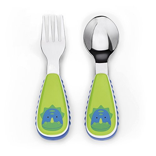 Skip Hop Baby Zoo Little Kid and Toddler Fork and Spoon Utensil Set Multi Dakota Dinosaur