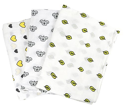 100% Cotton Muslin Baby Swaddle Soft Breathable Blankets - Set of 3 - 47x47 [並行輸入品]