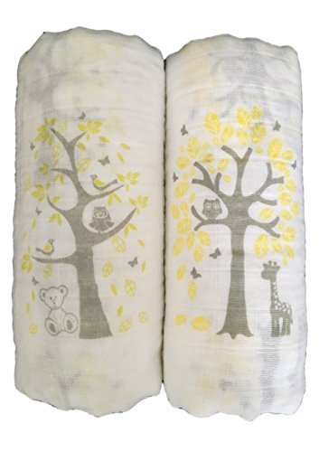 Seben Baby Muslin Swaddle Blankets 2 Pack - 47 x 47 - Tree Bear and Deer - Unisex for Boys or Girls
