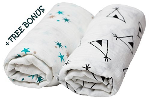Muslin Swaddle Blankets 2 Pack - 47x 49 - 100% Organic Cotton - Stylish Set for Boys or Girls + Free 2 Stroller Clips - Unisex