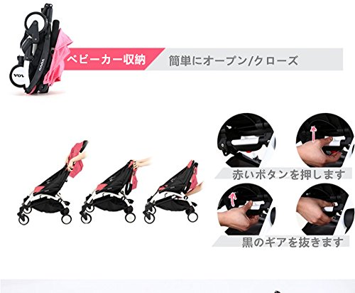 - 簡単収納:簡単にオープン/クローズことができます。 赤いボタンを押します、ワンクリックでベビーカーを使用して始めます。 黒のギアを抜きして、すぐ収納完了します。マザーはいつも赤ちゃんを抱いて、片手でベビーカーを収納することはすごく不便です。これをもって、マザーは片手でも楽になります。