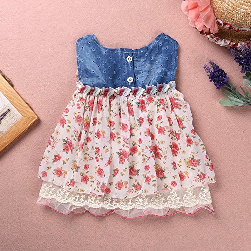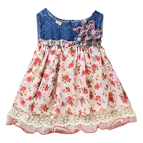 LEMON 女の赤ちゃんのチュチュドレスデニムショートスリーブレースプリンセスパーティーのスカート (80CM)