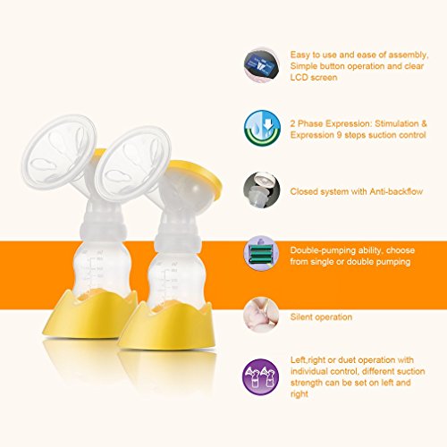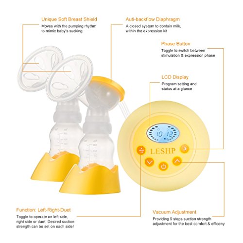 【2017 new version】電動搾乳器 LESHP 片側/両側電動ポンプ 吸引&マッサージ2つのモード 9つの吸引レベル LCD 液晶表示 快適な母乳育児 (両側電動ポンプ)