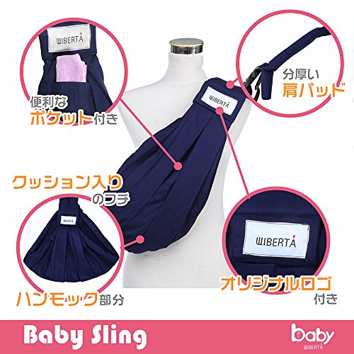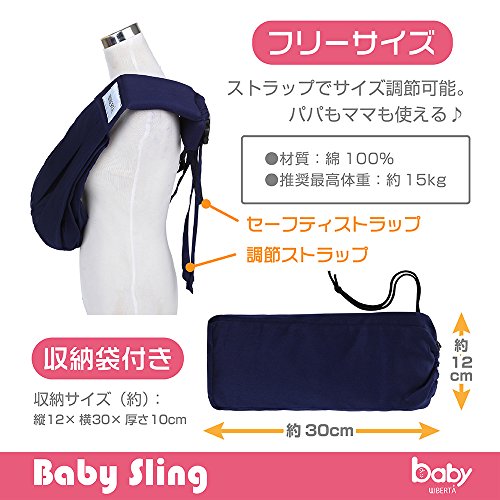 - 【材質】綿100%【推奨最高体重】約15kg【カラー】ネイビー【セット内容】ベビースリング本体、収納袋、日本語取扱説明書