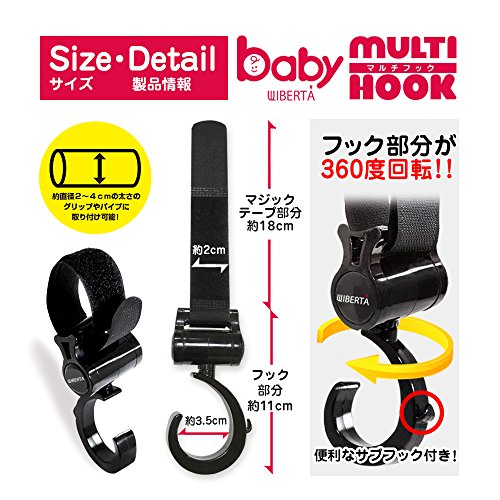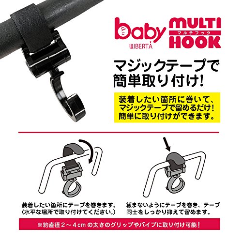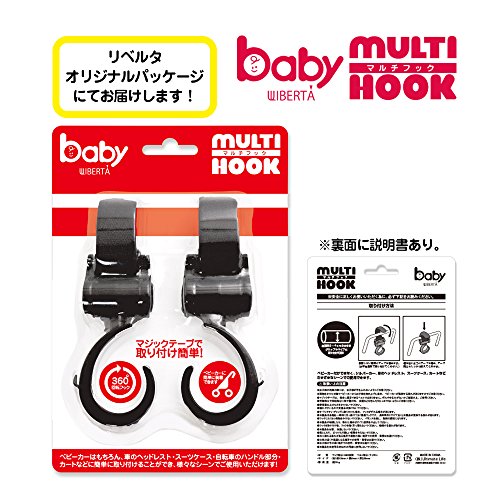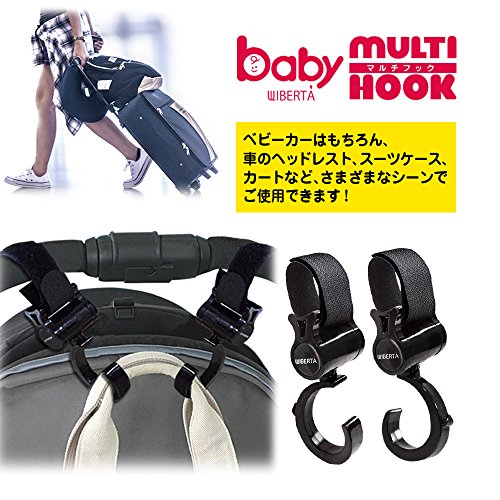WIBERTA ベビーカーフック マルチフック 360度回転 マジックテープ付き 耐荷重約5kg 2個組み