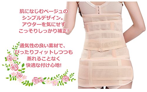 LICEL 産後ガードル 3点セット 綺麗なスタイル維持 わかりやすい マニュアル説明書付属『骨盤補正ベルト・コルセット・ウエスト補正ベルト』 (Mサイズ 74-84cm, ベージュ)