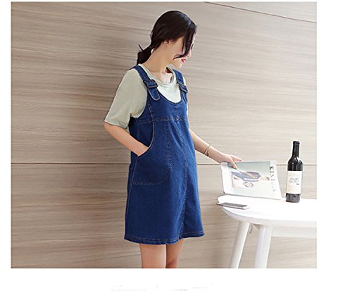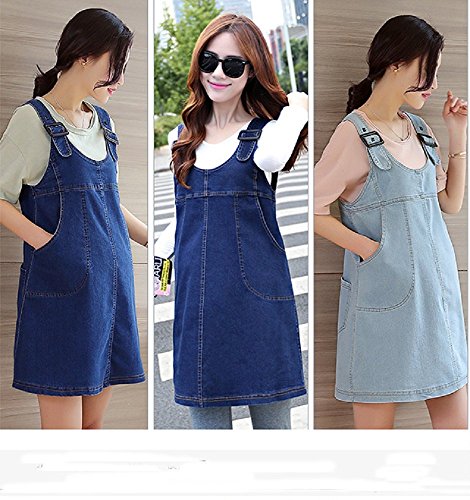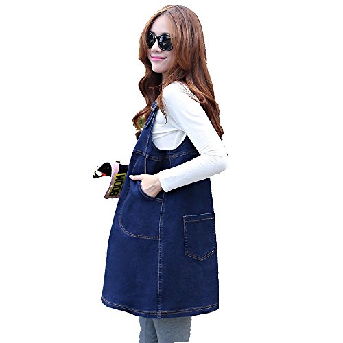 マタニティ レディースファッション オーバーオール デニムジャンパースカート 全2色 カジュアル フェミニン スポーティー お出かけ着 旅行 オリジナルアクセサリー付属 NRU0022 (XL, インディゴブルー)