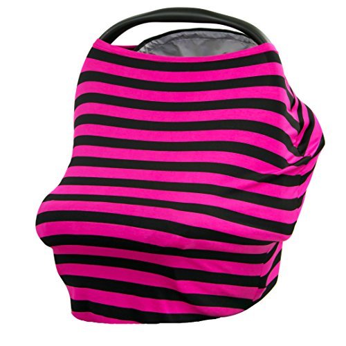 JLIKA Baby Car Seat Covers - Stretchy Infant Canopy and Nursing cover for newborns infants babies girls boys maternity apron infinity scarf carseats (Hot Pink/Black Stripe)
