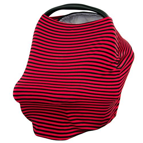 JLIKA Baby Car Seat Covers - Stretchy Infant Canopy and Nursing cover for breastfeeding newborns infants babies girls boys best shower gift maternity apron infinity scarf carseats (Red Black Stripe)
