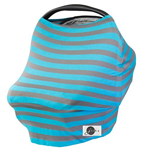 JLIKA Baby Car Seat Covers Stretchy Infant Canopy and Nursing cover for breastfeeding newborns infants babies girls boys gift maternity apron infinity scarf carseats! (Turquoise/Gray Stripe)
