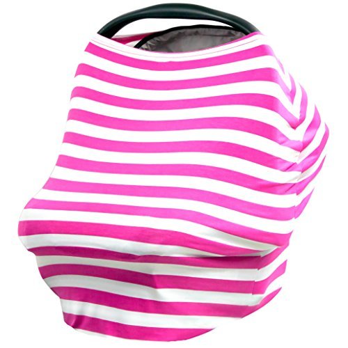 JLIKA Baby Car Seat Covers Stretchy Infant Canopy and Nursing cover for breastfeeding newborns infants babies girls boys gift maternity apron infinity scarf carseats! (Hot Pink White Stripe)