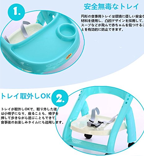 - 【安全無毒なトレイと四つのホイール付き】円形の食事用トレイは環境に優しいゼロホルムアルデヒドの材料を使用、取外しは簡単です。トレイは凹凸デザインで、効率よくスープなどの流出を防止できます。トレイを取り外した後は小さい椅子になります。ホイールは取り付け簡単で、ブレーキ付きで滑り止めできます。