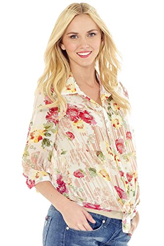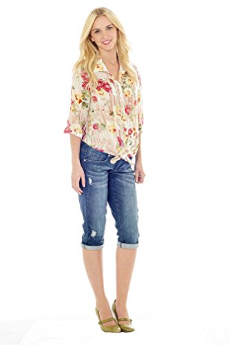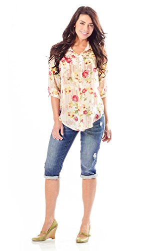 トップにはエイミーはダウンの軽量トップ4長さのスリーブです。シックな花柄の薄手の生地で重ね着に最適です。テーパーの付いたヘムラインやゆったり着用することができる。またかわいいノットを結んだ。開いたり、閉じている状態で、妊婦には装着でいてもいなくても。。。このシャツはあなたのワードローブのていますサイズ可能であれば妊娠前のサイズ) XS = 2 – 4 S = 4 – 6 M = 8 – 10 L = 10 – 12 XL = 12 – 14ポリエステル100 %手洗いまたは洗濯機を使用の際は冷水で穏やかなサイクル米国製