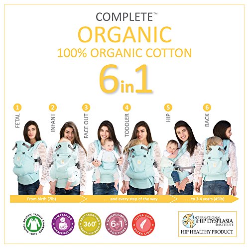 MORE carrying positions, longer lifespan (newborn to 45lb), and more features than any other baby carrier.;SIX (6) ERGONOMIC CARRYING POSITIONS: Front-Fetal, Front-Infant, Front Facing Out, Front-Toddler, Hip and Back. NO extra infant insert needed for newborn babies;Includes the signature Lumbar Support, Neck Support, Sleeping Hood, 2-way Shoulder Straps, and zippered Pocket. Lightweight, compact, and machine washable.;ERGONOMIC for MAXIMUM COMFORT: the wide and sturdy waist belt, 3 wide padded shoulder straps, lumbar support, and thoughtful design alleviate pressure on wearer's back and shoulders and evenly distribute baby's weight.;BESTSELLER: The LILLEbaby COMPLETE Organic is the perfect baby shower gift or choice for your registry; parents enjoy 360 Degree carrying with adjustability and features that will take them comfortably and happily through the babywearing years.