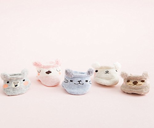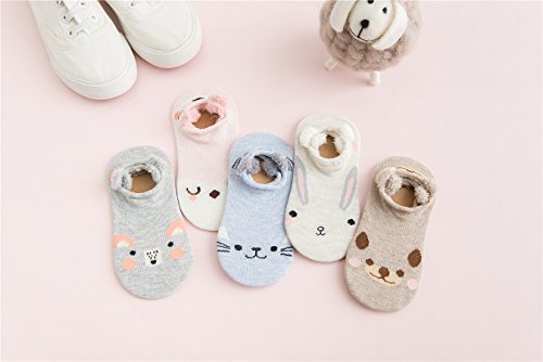 LILY CUPS 3D立体 通園 通学 可愛い動物柄 靴下 キッズ ソックス 女の子 カラフル― 5足セット ガールズ キッズ (S, ピンク)