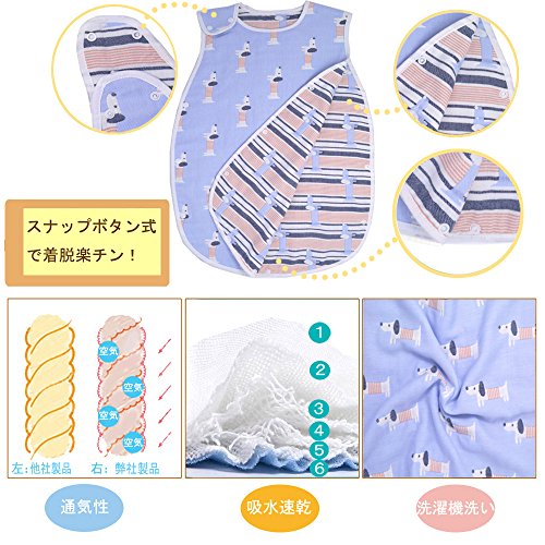 LILY CUPS 6重 スリーパー 冬 スリーパー キッズ スリーパー ガーゼ 出産祝い (新生児~3歳頃) (M, 犬)