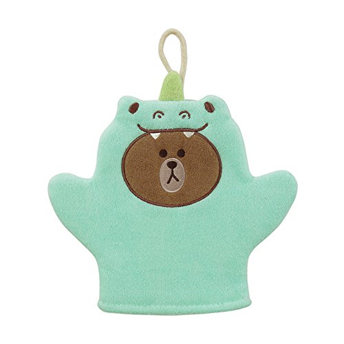 LINE FRIENDSジャングルブラウンシリーズ♪ 不思議なジャングルで繰り広げられる大冒険。 ブラウンが色々な動物に変身するよ! ジャングルブラウンのキッズバスグローブ☆ なんでも食べちゃいそうな大きな牙がカッコいいダイノブラウン! タオルは柔らかく優しい肌触りで、赤ちゃんの肌にも刺激を与えません。 フックにかけられる紐付きで、収納や洗濯の際に便利です。 ジャングルブラウンと快適なバスタイムを楽しもう♪