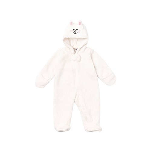 フラッフィーフリース素材のベビーロンパース。 フードから足の裏までコニーが暖かくベビーを包みます☆ もこもこ可愛い赤ちゃんを暖かく抱いてあげてください♪ 友だちや家族へのプレゼントにもおすすめです。