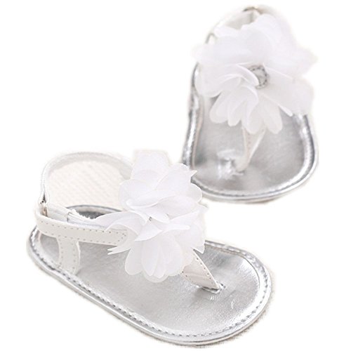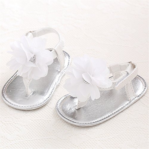 - LINKEY Infant Baby Girls Summer Flower Soft Sole Sandals Flip Flops Beginer Walker Shoes Silver Size S