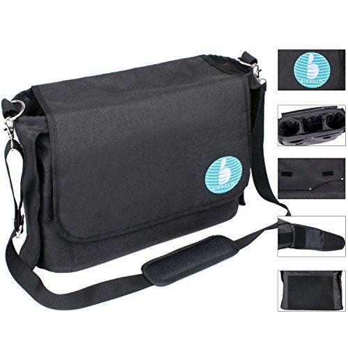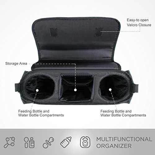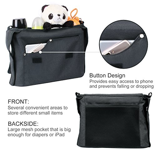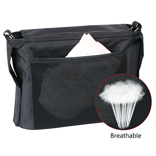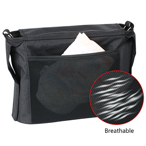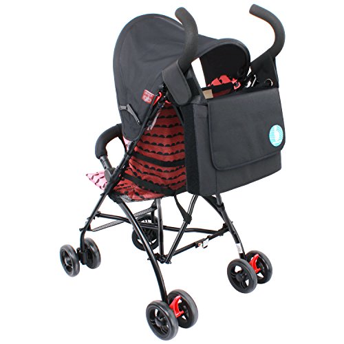 LINSAM ベビーカーバッグ マジックテープ ベルト付 ベビー用 収納バッグ ショルダーバッグ 大容量(ブラック)