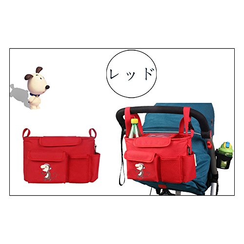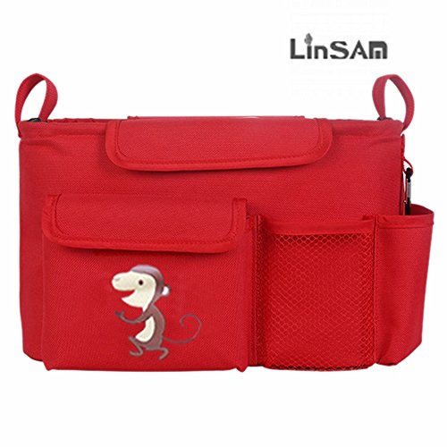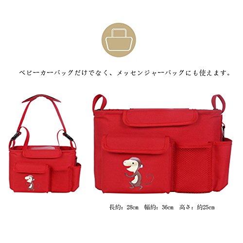 LINSAM 2way ベビーカー ドリンク ホルダー ネット バッグ 多機能小物入れ ベビーカーバッグ 収納 ベビーカー 保冷バッグ ベビーカー用バッグ 保温防滴 マザーズバッグ ストローラー ベビーカー用 収納バスケット(サル&レッド)