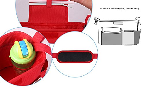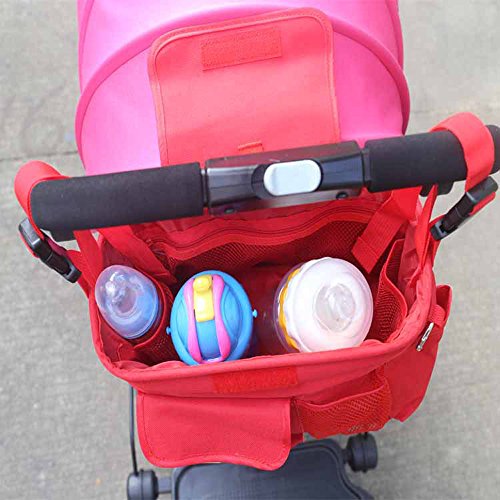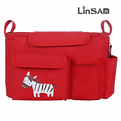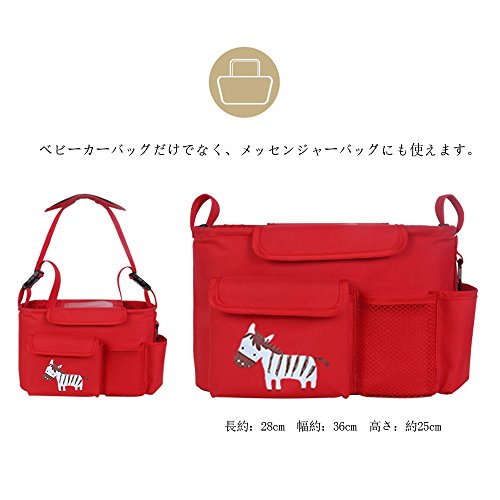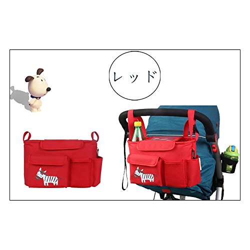 LINSAM 2way ベビーカー ドリンク ホルダー ネット バッグ 多機能小物入れ ベビーカーバッグ 収納 ベビーカー 保冷バッグ ベビーカー用バッグ 保温防滴 マザーズバッグ ストローラー ベビーカー用 収納バスケット(シマウマ&レッド)