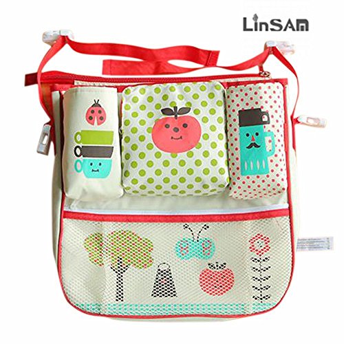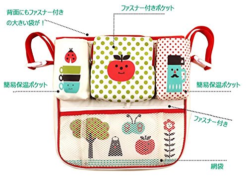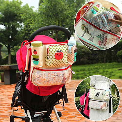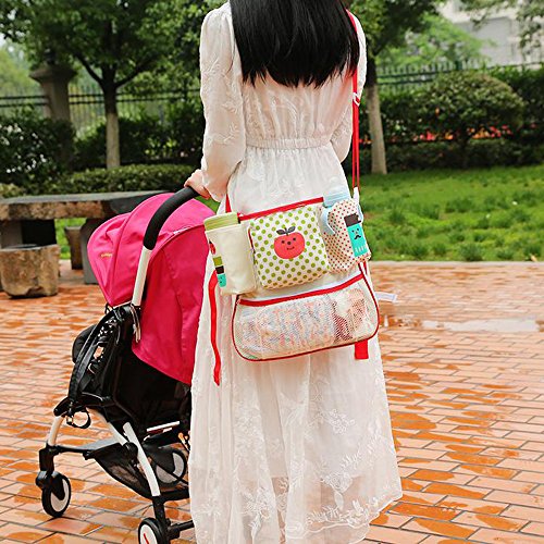 LINSAM ベビーカー ドリンク ホルダー ネット バッグ 多機能小物入れ ベビーカーバッグ 収納 ベビーカー 保冷バッグ ベビーカー用バッグ 保温防滴 マザーズバッグ ストローラー ベビーカー用 収納バスケット(苹果)