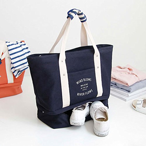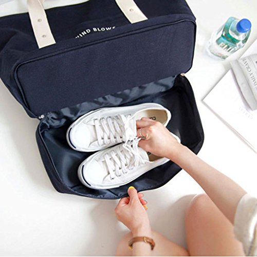 LINSAM 多機能 ショルダーバッグ トラベルバッグ 収納袋 各種トラベルバッグ・携帯用ポーチ付き 修学旅行 温泉旅行 日帰り旅行 ブルー