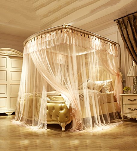 LIQICAI 蚊帳 高密度ネット 厚い 伸縮式スタンド U字形ガイドレール 2.1m高い、 マルチサイズオプション ( 色 : ベージュ , サイズ さいず : 1.8x2m )